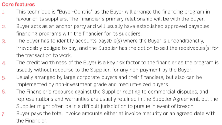 Supplier is on boarded to the Financier's payables platform and Supplier Agreement / Receivables Purchase Agreement between Supplier and Financier pursuant to which Supplier agrees to sell all those Receivables due from the Buyer to the Financier at a discount but Supplier gets paid earlier than maturity date of original invoice.