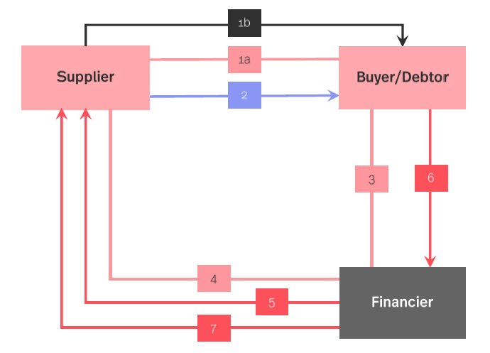 1a. Contract of Sale between Buyer and Supplier. Buyer is usually able to impose extended payment terms on when invoice becomes due for payment.