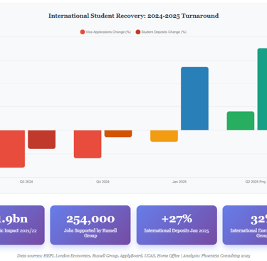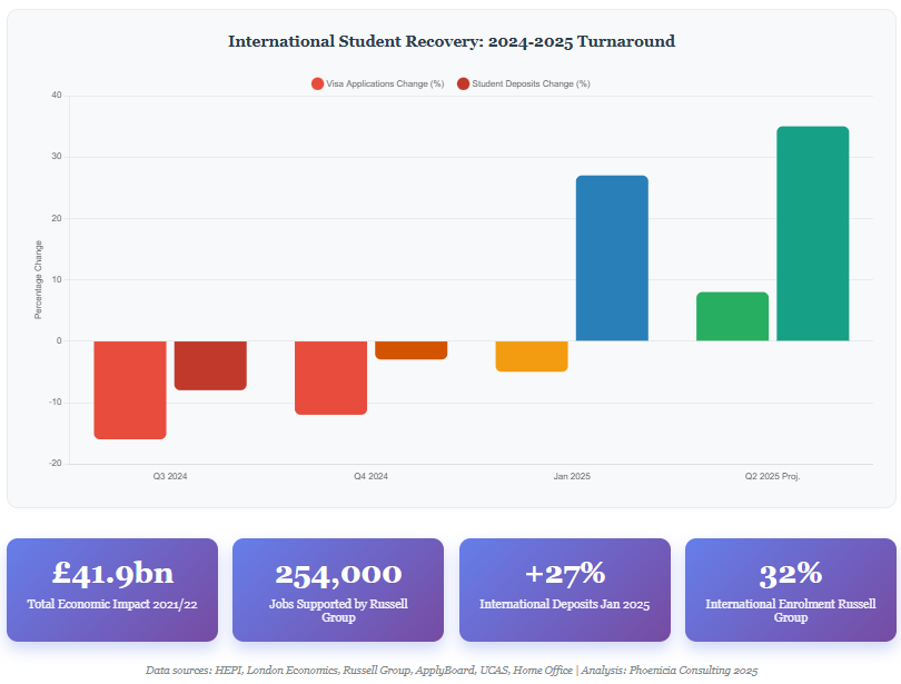 Bottom Line Up Front: After a challenging 2024 marked by policy uncertainty and declining international enrolments, UK universities are positioned for strategic recovery in 2025, with early indicators showing renewed international interest and partnerships becoming more crucial than ever for institutional sustainability. The UK higher education sector, worth over £265 billion to the national economy, faces a critical juncture in its international partnership strategy. Despite a 12% decline in international student visa applications in 2024, early data from January 2025 intake reveals a 27% increase in international student deposits and 31% rise in firm acceptances, suggesting a significant rebound in international confidence.